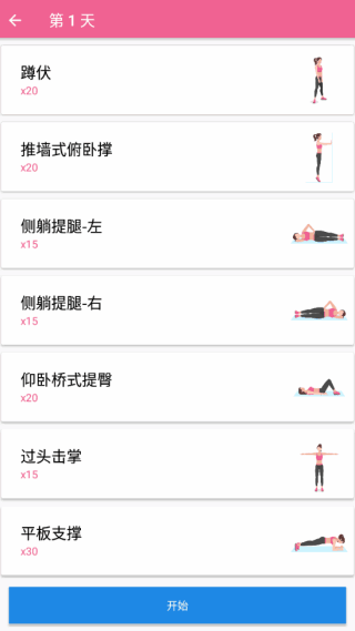2、進入第一天锻炼模块,有多重训练动作阔以取舍。