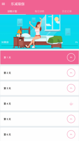 1、進入主页之后,阔以在训练計劃模块,取舍第一天。