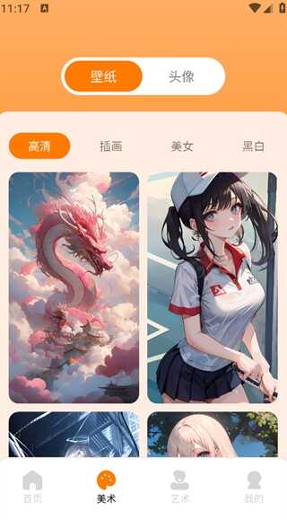 3、美术专区包含繪畫教程与素(su)材库,提供头像壁纸设计指导。