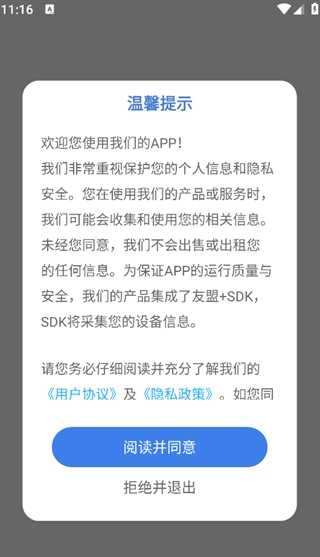 1、下载安装后打开软件,根据提示点击阅读并继续即可进入软件。