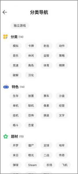 2、搜索查询界面可根据热门标签找寻喜欢的游戏类型;