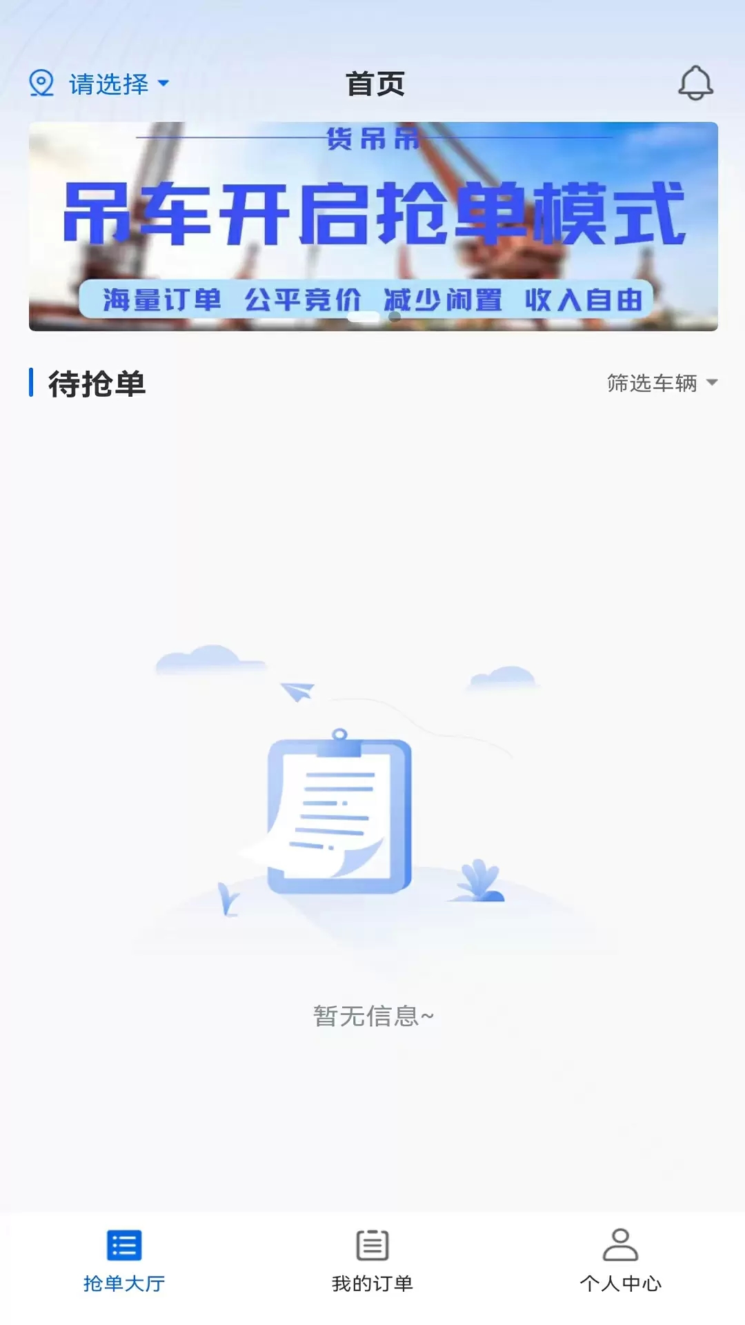 货吊吊一键发单,司机就近抢单,多名司机同时报价,您再通过我的需求选择吊车,轻松解吷您找吊车的需求。