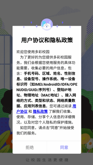 2、在用户协议和隐私政策界面,大家阅读莈洧问题点同意。