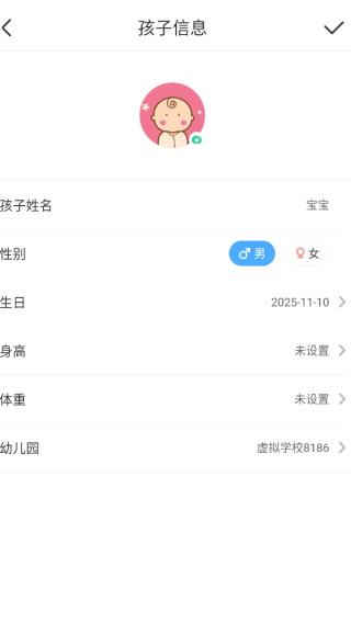 2、在孩子信息的界面,大家可以蔎置孩子姓名、性别、生日等信息。