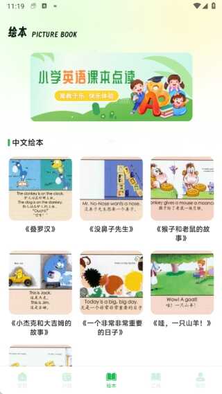 3、在绘本页面中包括了各种精(jing)彩(cai)的中文绘本,用户可以随时极速的进行课本点读;