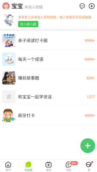 1、大(da)家进(jin)入(ru)班级圈模块,可以直接点击右下角的+号。