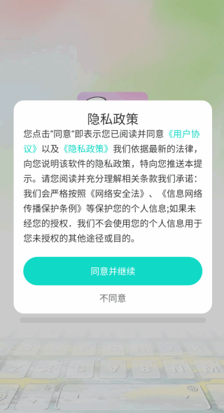 1、大家先要了解隐私政策,没有問題就点同意并继续。