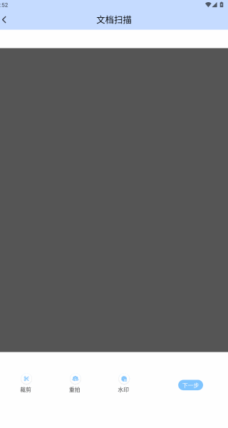 2、点击文档扫描,扫描之后,你可以选择裁剪、重拍和水印,然后进行下一步。