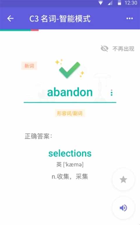 既保留了传统听写模式,又增加了优化后的智能(zhineng)模式——沉浸式学习,刷词效率高。拼错的单(dan)词(ci)即错即学,并通过記憶曲线反复出现(Appear),直到拼对为止。每次自定义要学习的单(dan)词(ci)数,一(yi)次学习即可了解(jie)全(quan)部所选单(dan)词(ci)。