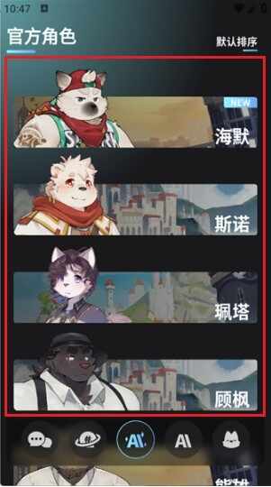 2、登录后进入主界面,浏览多个可供选择(ze)的聊天角色,找到心仪目标。