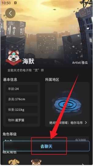 3、点击喜歡的角色,进入详情页,选择(ze)”去聊天”按钮,启动(qidong)对话模式。