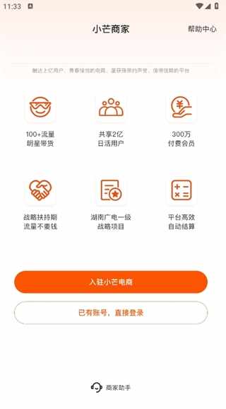 2、如果你是小芒的商家那么直接点击已有账号,直接登录。没有账号则need入驻小芒电商。