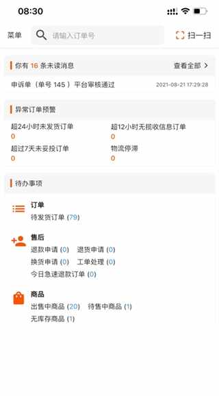 3、进入平台后可以查(cha)看店铺的各种数据、信息等等,一一处理。
