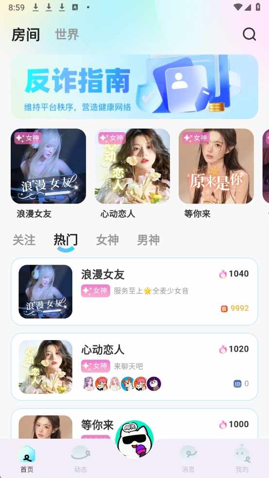 3、多元房间场景覆盖:平台设有多种主题房间场景,包括情感倾诉、夜话闲聊、兴趣交流、音乐分享、游戏开黑等,分類清晰、主题丰富,用户可根据当前心(xin)情(qing)选择最适合自己(oneself)的聊天场景。
