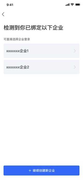 3、如该员工已绑定(bangding)多个商旅账号,会进行二次验证,此时可继续点击创建新企业;