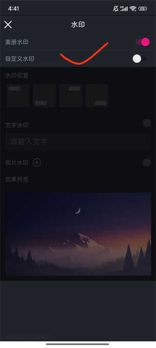 4、可以在这里关闭美册水印,设置自定义水印(注意:美册水印关闭目前是会员付费功能)