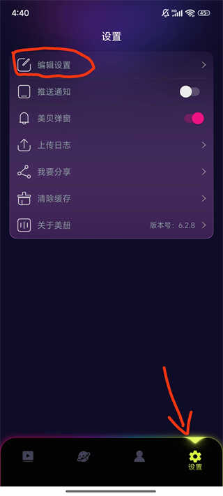 1、进入软件后点击我的页面,找到编辑(bianji)设置。