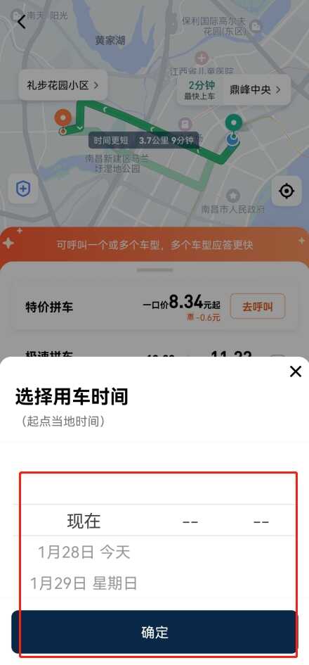 5、设置完成后即可点击下方的预约快车;