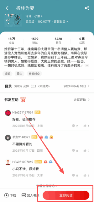 3、点击“立即阅读”选项,快速打开该小说的章节内容,准备开始阅读。