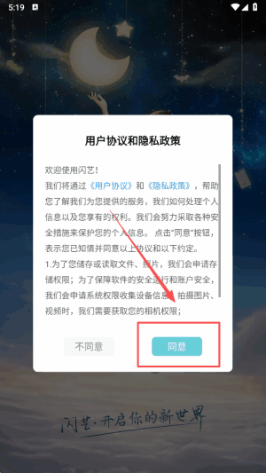 1、启动应用后,点击同意条款即可顺利进入软件界面,开始您的使用体验。