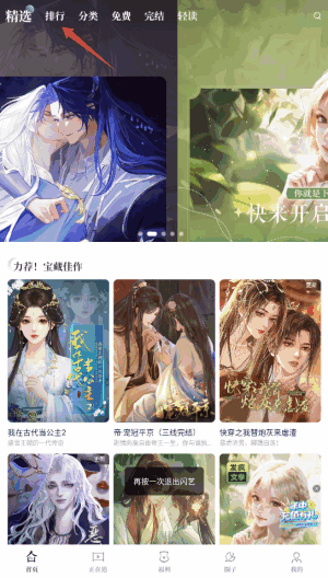 2、启动闪艺APP后,在首页导航栏选择"排行"版块,这里展示平台各类小说榜单。