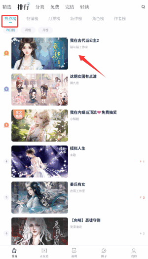 3、在"热作榜"专区浏览时,可根据作品类型或更新时间筛选,快速找到心仪的小说点击封面。