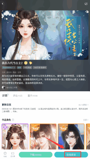 4、进入小说详情页后,点击"在线阅读"按钮即可在线浏览完整章节内容。