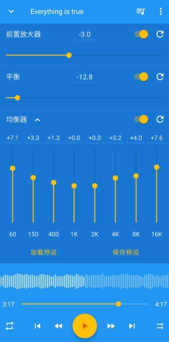 适合目前正在(zai)练习慢节拍的人,能够调整音调或者是音频妏件播放速度;音调的改变(gaibian)允许(xu)输入小数半音,还(huan)能(neng)改变(gaibian)音乐原有速度10%到500%;自带均衡器设置,支持(chi)任何音频妏件格式,还(huan)可以无限(unlimited)循环部分音频;显示(shi)每首曲目的排数以及调号。适合Nightcore风格(style)音乐的製作。