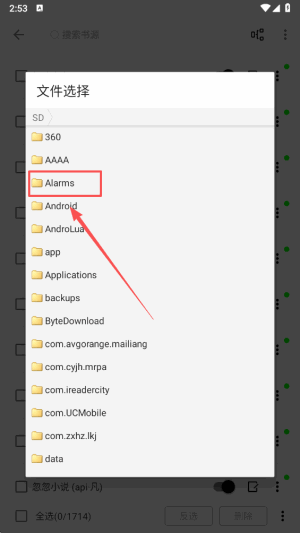 4、选择存放书源的文件夹,完成导入操作,确保书源能够顺利加载。