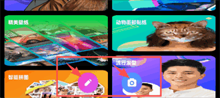 3、在软件首页,可以自己选择(ze)拍摄、拼图、特效等不同服务。