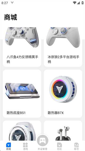 1、下载并打开软件,点击商场版块拥有多款的优质手柄产品可供玩家购买;