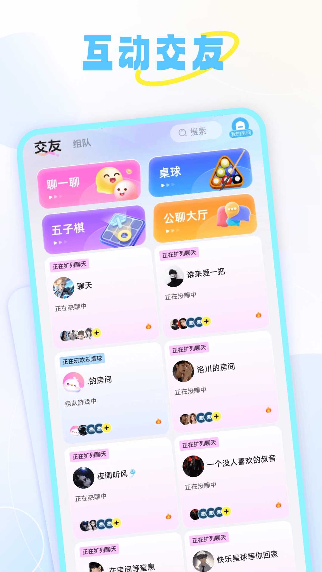 1. 派对交友:创建或加入各(ge)类(lei)主题派对,与志同道合的人一起交流互(hu)动。