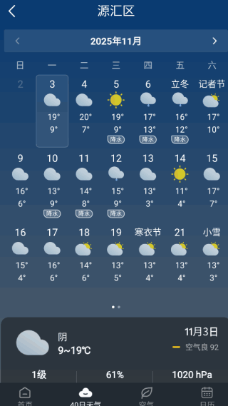 2、提(ti)供(gong)的40日天气预报功能也非常不(bu)错,方便大家做好出行准备。