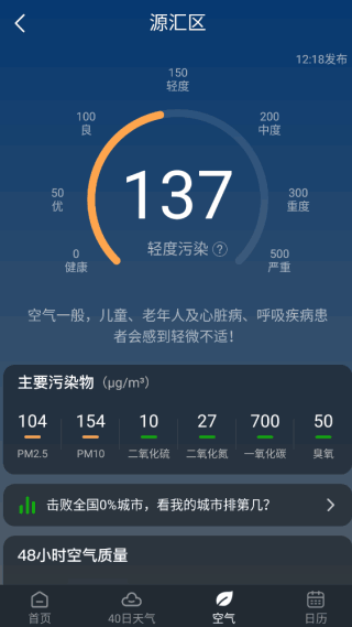3、提(ti)供(gong)空气质量情况,各种指数在这里都有详细(xiangxi)记录,污染情况一目了然。