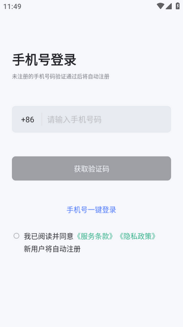 输入手机号获取(Obtain)验证码,完成验证后即可进入软件主界面,开始使用各项功能。