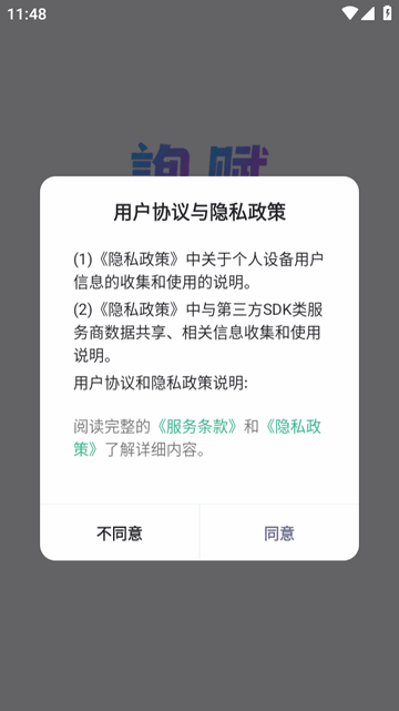 1、第一次下载安装好进入软件先同意用户隐私协议。