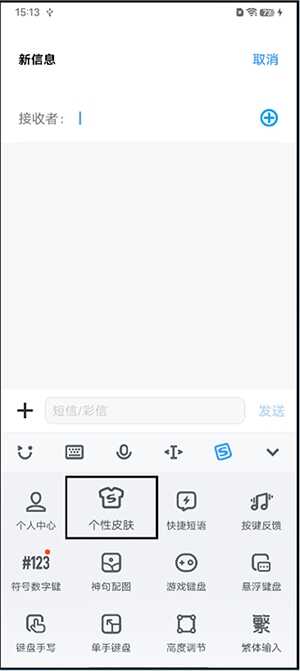 2、进入菜单界面,包括个(ge)人(ren)中心、个性皮肤、快捷短语、按键反馈等,选择【个性皮肤】选项。