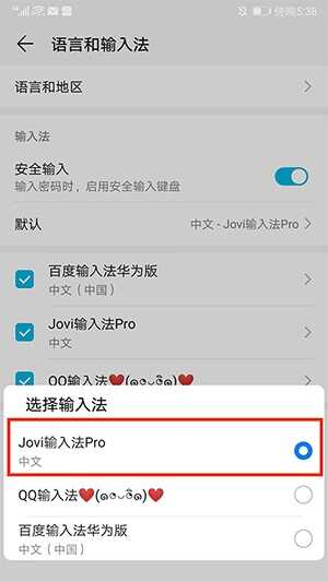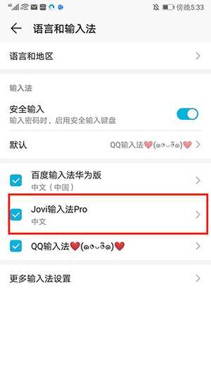 4、如图,可看到已将Jovi输入法pro设置为默认输入法了。