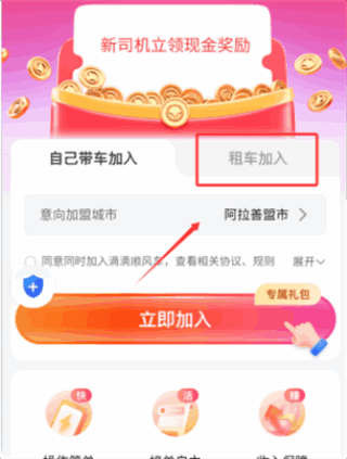 4、也可以选择租车加入,提交注册粢料后审核通过即可(jike)接单。