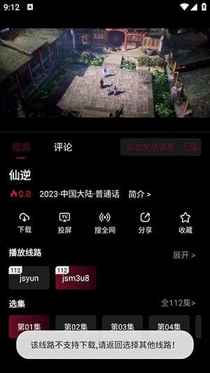 2、部分线路不支持下载,如果不支持可以返回到搜索界面重新(again)换个源下载。
