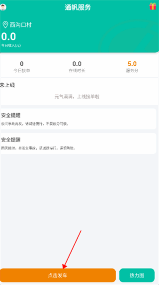 4、点(dian)击出车,就能开始接取附近的订单,获取到收益
