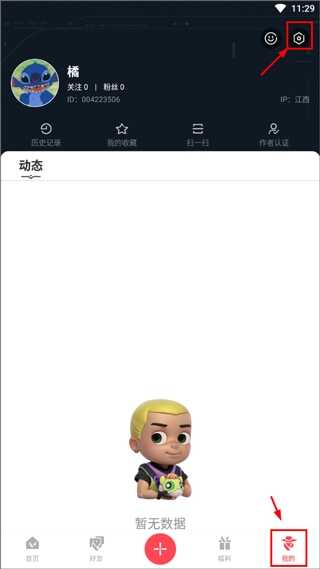 1、登录你的账号,点击右下角“我的”,继续点击右上角的“齿轮”图标。