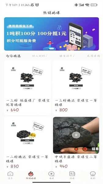 2、提供了多种煤炭产品,包括精煤,二精煤,粉煤等,都有专门的板块,直接点击就可以选择。