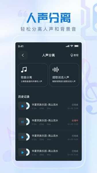 2.音频提取:支持提取视频、链接里的音频;
