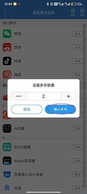 3、选择多开的数量,随后点击“确定(ding)多开”。