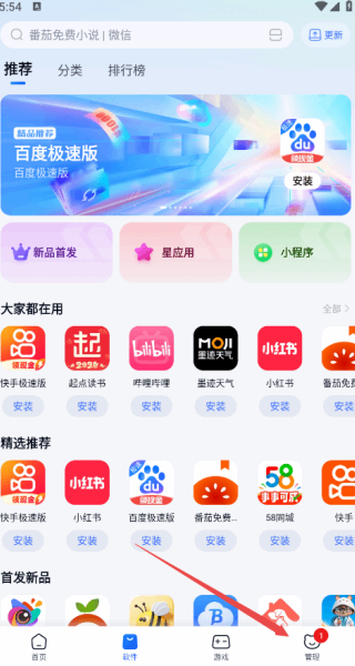 1.下载当前软件之后(hou)就可以看到两个(two)分类了,分为游戏以及软件;