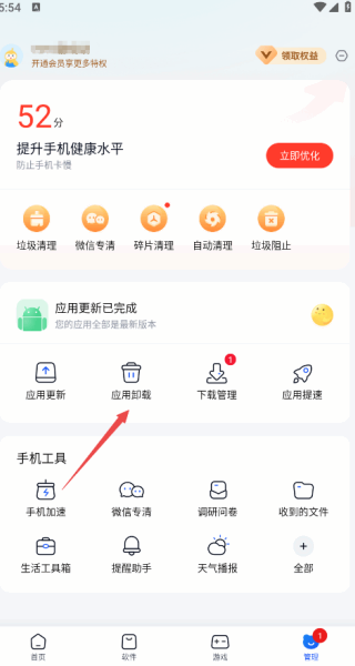 2、在个人中心,大家可以点击下方的应用卸载功能(Function),进入卸载板块;