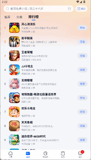 2.其中还有排行榜的功能(Function),优质的游戏都会出现在排行榜上。