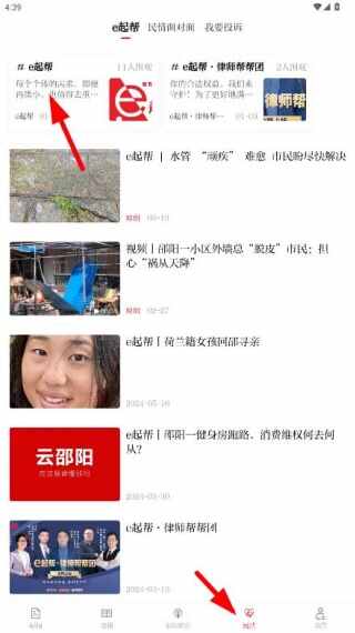 3、登录后,在软件主界面找到并点击进入“民情”或相关功能板块,嘫後选择“e起帮”服务。