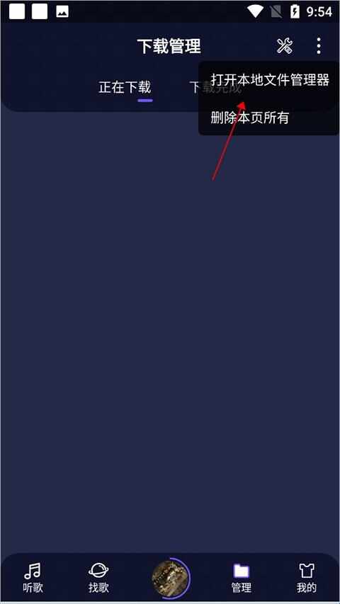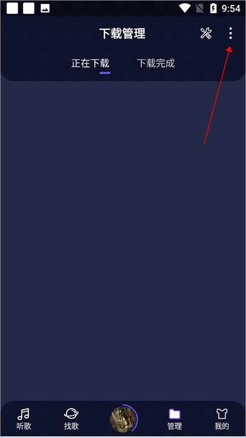 用户进入fly音乐【管理】頁面中,点击右上角的扩展菜单图标(tubiao)(下图红色箭头所指)